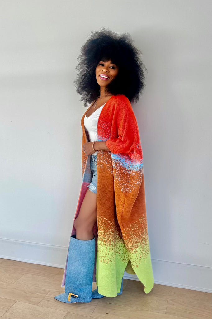Ombré cardigan maxi sweater. One size fits up to 2X