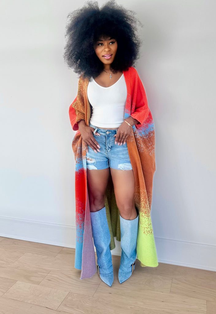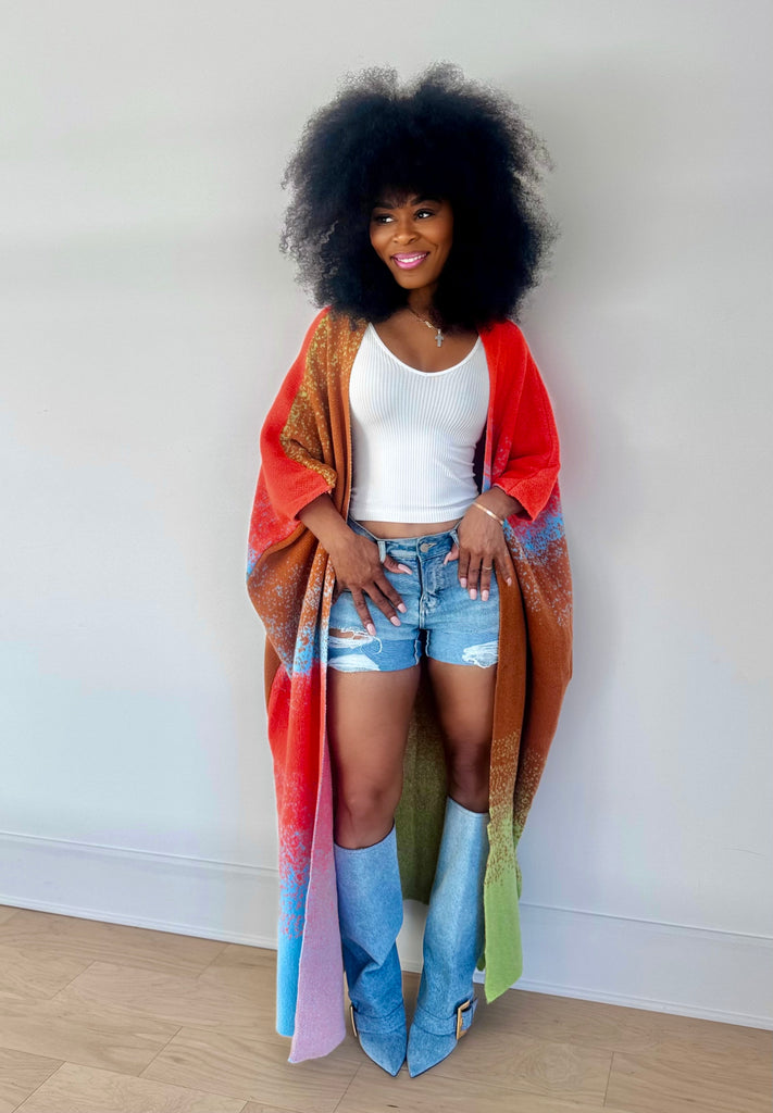Ombré cardigan maxi sweater. One size fits up to 2X