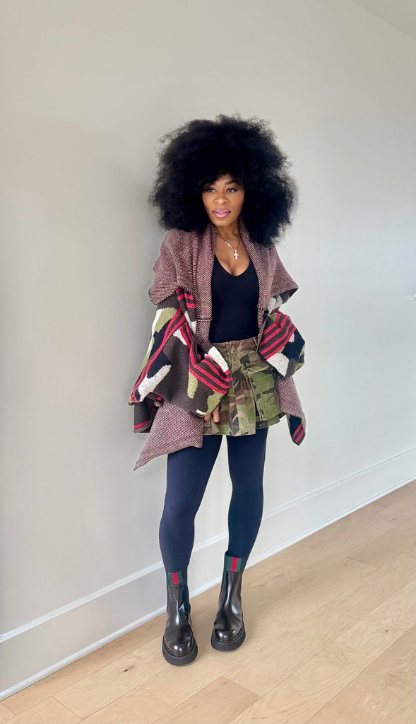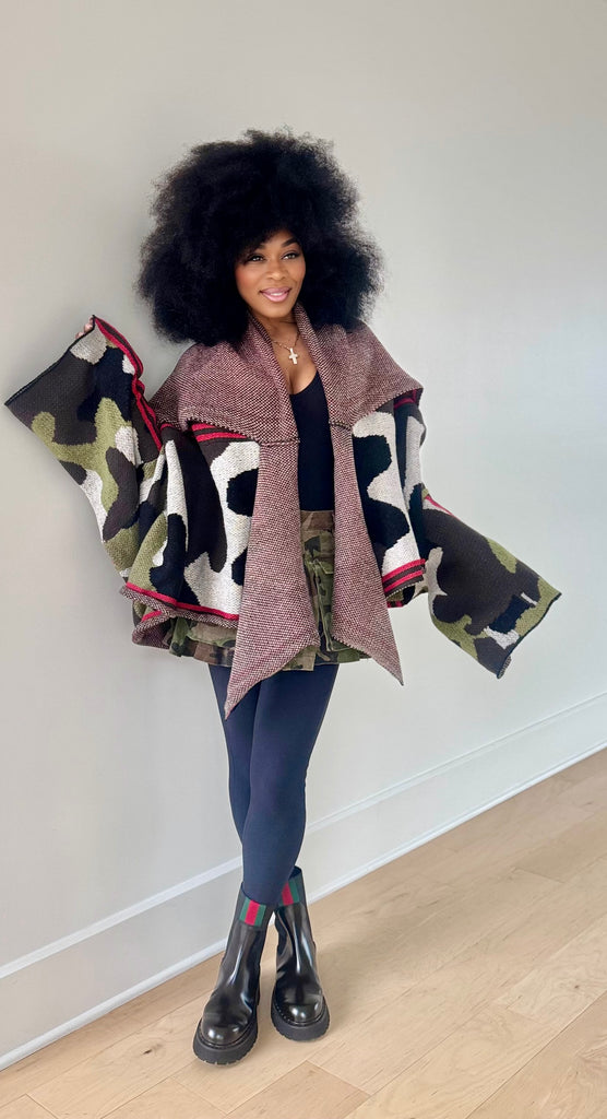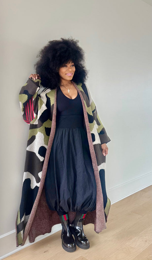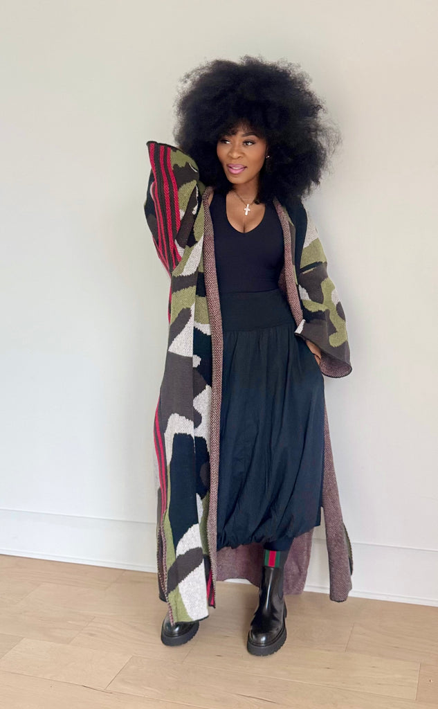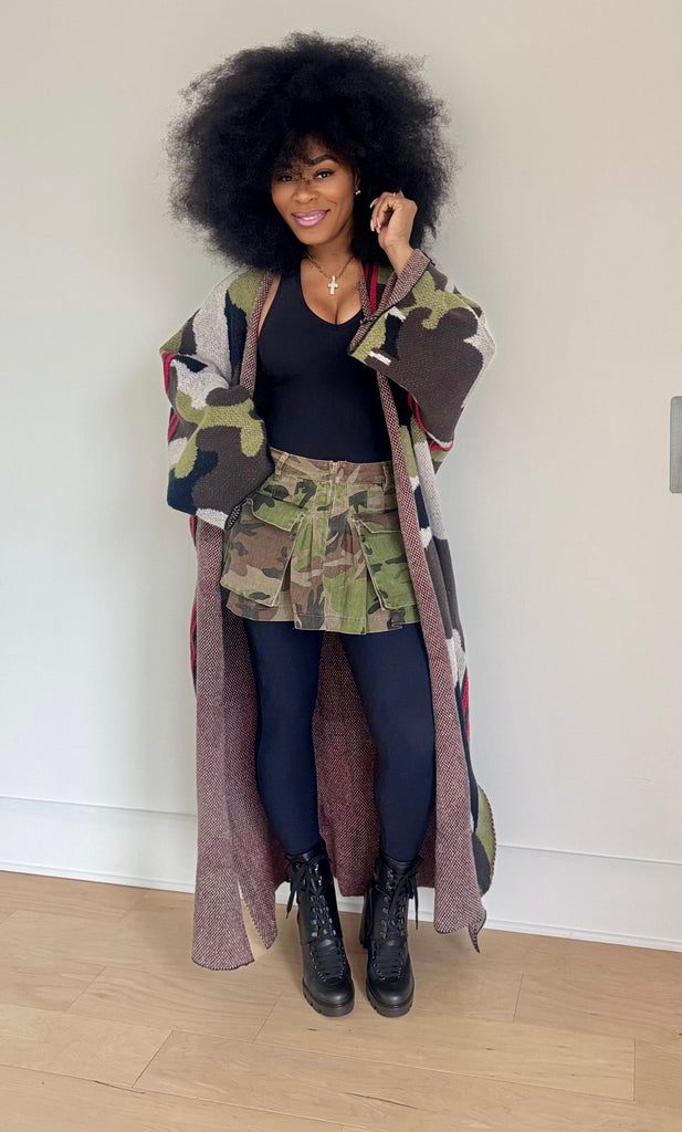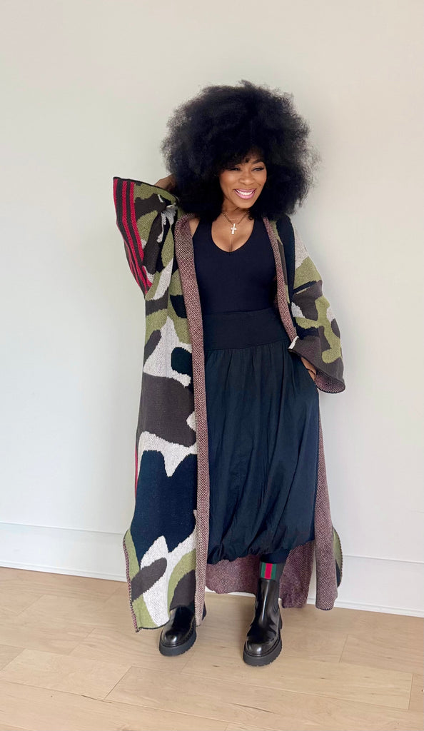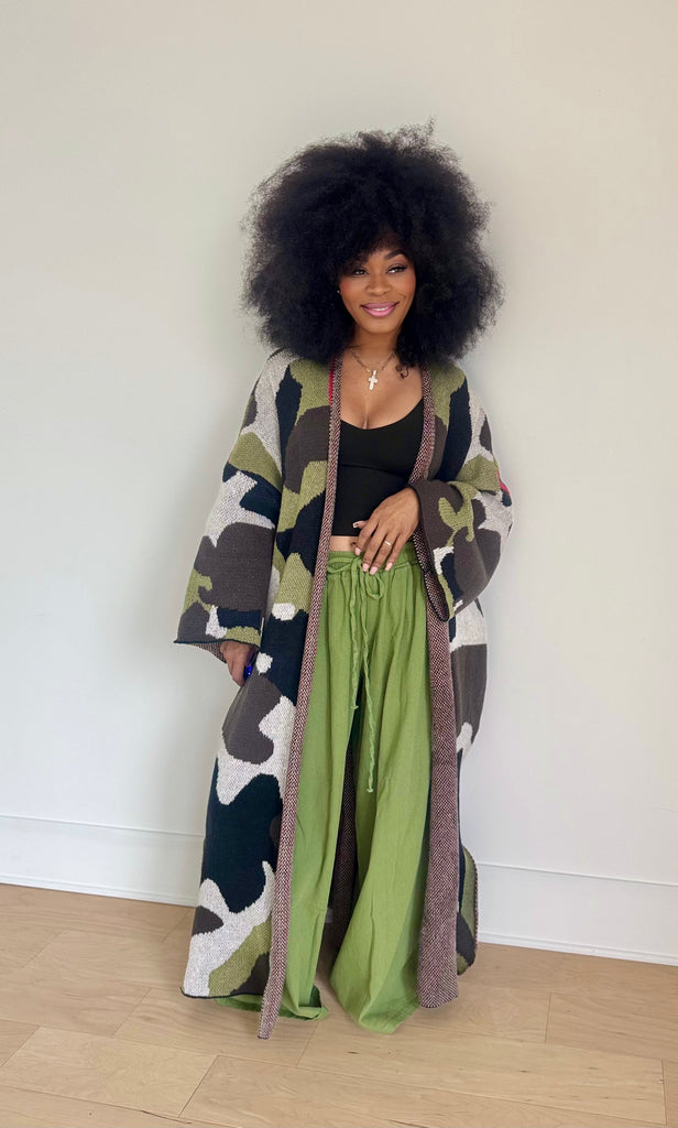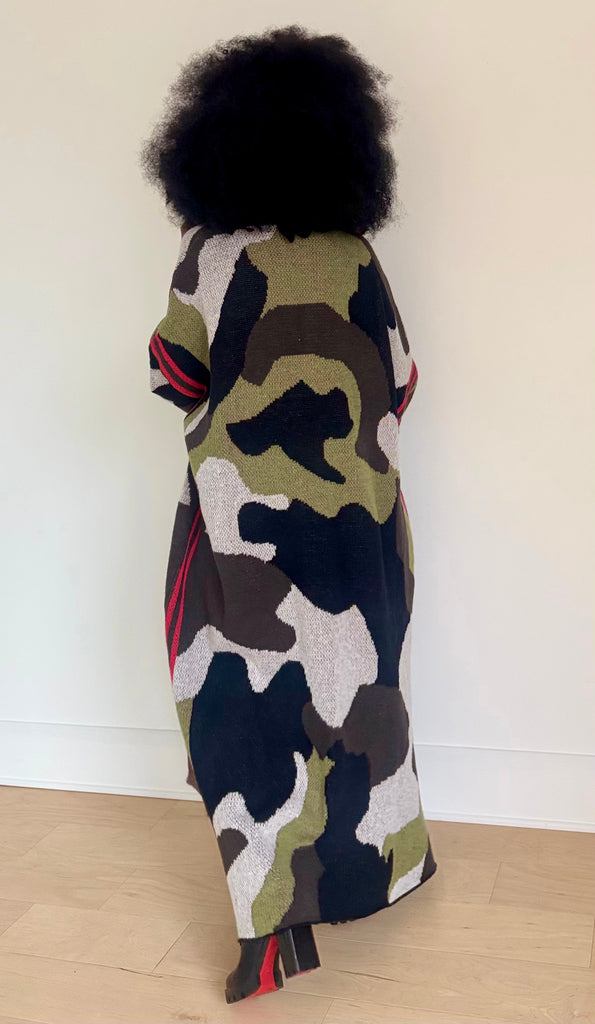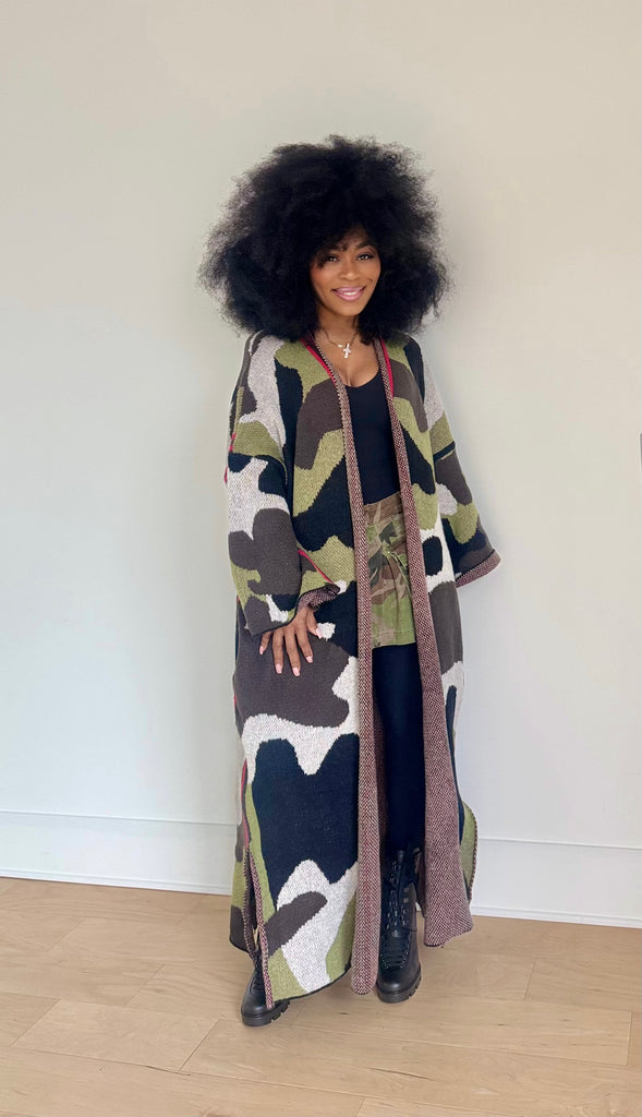 Camouflage maxi cardigan. One size fits size small up to 2X